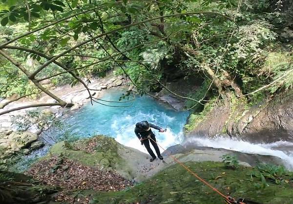 今天我們來的是沙蛙溯溪團隊找到的溪降點總共會看到三個瀑布溪降四次第一個點是龍瀑也就是這邊